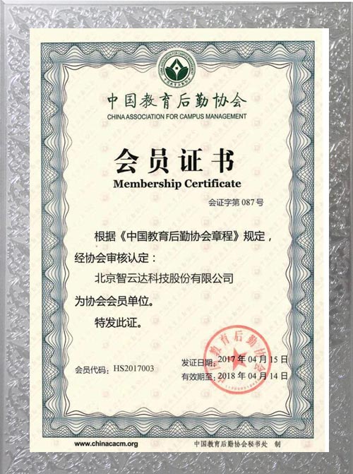 中國教育后勤協(xié)會(huì)會(huì)員證書