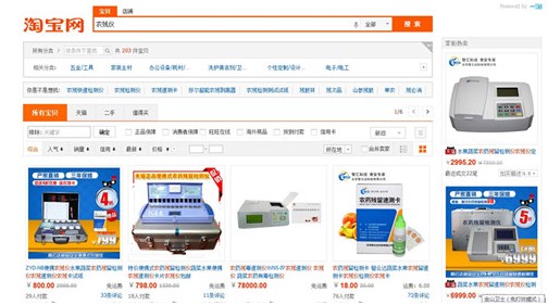 接下來點(diǎn)擊“農(nóng)殘儀”關(guān)鍵詞進(jìn)入天貓網(wǎng)頁搜索頁面,就會(huì)出現(xiàn)不同類型和價(jià)目的農(nóng)殘儀。首先映入眼簾的是智云達(dá)ZYD-NB便攜式水果蔬菜農(nóng)藥殘留速測儀,還有6通道和12通道農(nóng)藥殘留速測儀,農(nóng)藥殘留速測卡等多款智云達(dá)的代表性快檢產(chǎn)品都呈現(xiàn)在搜索頁面中,可見智云達(dá)天貓店鋪的快檢產(chǎn)品已牢牢占據(jù)淘寶熱搜排行榜搜索排名第一的優(yōu)勢,智云達(dá)店鋪在淘寶中保持快檢產(chǎn)品品牌第一是毋庸置疑的。