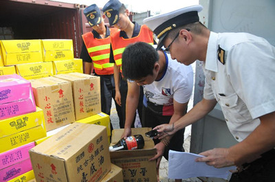受臺灣“地溝油”案的影響,10月10日,廈門海關工作人員在查驗即將重裝入柜的臺灣“地溝油”涉事企業產品,并將涉事企業的相關產品進行辭退。