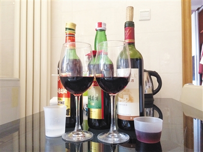 實(shí)驗(yàn)樣品:3種品牌的紅葡萄酒,分別從京客隆超市、小煙酒商店、綜合市場(chǎng)購(gòu)買,價(jià)格分別為13元、20元、45元。一袋200g的食用堿面,從京客隆超市購(gòu)買。