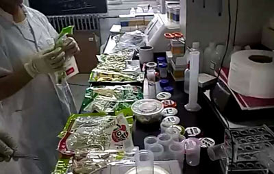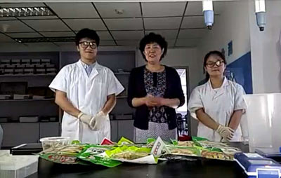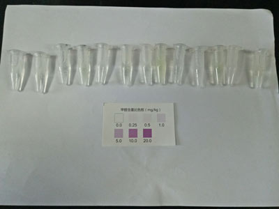 北京智云達技術(shù)工程師楊老師和王老師首先對不同樣品通過使用北京智云達自主研發(fā)生產(chǎn)的快速檢測產(chǎn)品:甲醛速測管,對泡椒鳳爪樣品進行甲醛含量的檢測。