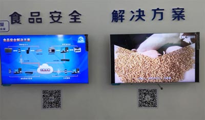 參展期間,在新疆電信食品安全解決方案展示區(qū),展位視頻循環(huán)播放北京智云達食品安全解決方案的詳細介紹,流程及適用對象、監(jiān)控系統(tǒng)。在電腦屏幕前,前來詢問解決方案系統(tǒng)的人絡(luò)繹不絕,更有感興趣的外國友人跨越語言障礙,耐心聽我們的技術(shù)人員一一做詳細解答。同時在參展區(qū)展示北京智云達自主研發(fā)生產(chǎn)的快速檢測儀、快速檢測試劑盒,來自伊朗的國際友人對儀器頗有好感,進行詳細咨詢。電視下方設(shè)置關(guān)注官方微信二維碼,方便興趣人員關(guān)注留言。