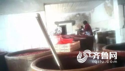 工作人員又帶記者參觀了蜜餞的腌制車(chē)間。在雜亂的車(chē)間內(nèi),擺放著很多大的陶瓷缸,里面是已經(jīng)煮好的山楂,表面漂浮著很多白色的泡沫。工作人員說(shuō),這些山楂都是用木棍來(lái)攪拌的。
