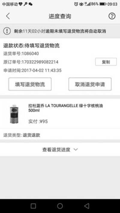 隨后,王女士也表示,網(wǎng)上公布的說(shuō)明文件除中文說(shuō)明外,其余證明資料均字跡不清,希望蜜芽方面能提供清晰的說(shuō)明原件。4月2日,蜜芽告知王女士,由于一些原因,無(wú)法提供原件。同時(shí)蜜芽客服也表示,作為最終的處理結(jié)果,王女士除了能無(wú)條件退貨退款外,蜜芽網(wǎng)還將贈(zèng)送王女士一張50元的優(yōu)惠券。王女士在電話中表示,沒(méi)有一個(gè)明確的解釋,自己是不會(huì)認(rèn)可蜜芽的處理結(jié)果的。4月2日下午,王女士的蜜芽賬戶中突然多了50元的優(yōu)惠券,并且自己購(gòu)買(mǎi)核桃油的訂單狀態(tài)自動(dòng)變成了“退貨退款”。