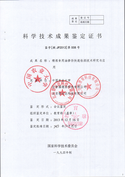 12月16日,由智云達與中國農業大學、福德安共同參與的“果蔬采后農藥殘留及微生物快速檢測技術研究與應用”、“精煉食用油摻偽快速檢測技術研究與應用項目”在中國農業大學食品學院會議室參加了教育部組織的科技成果鑒定。