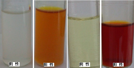 如溶液變為橙紅色至棕紅色,則判定為陽性;其他顏色判為陰性。
