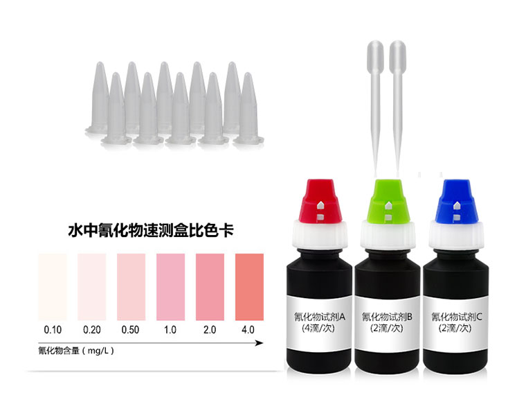 水中氰化物與檢測試劑反應(yīng)生成紅色化合物,含量越高紅色越深。