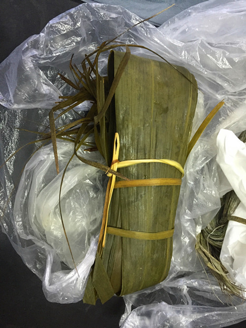 首先我們將文先生寄送過來的兩種粽葉都進行剪碎取樣,稱取 0.8g 樣品于提取瓶中,加蒸餾水或純凈水 20mL,蓋上蓋振搖 1 分鐘,放置 10min,期間可振搖加快提取,其上清液為樣品液。