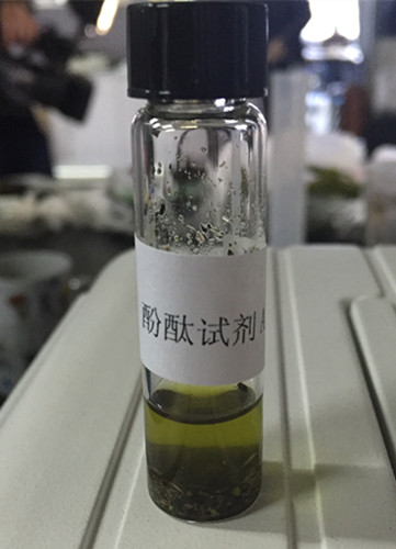 若溶液出現粉紅至紫紅色,則判為陽性(+);否則判為陰性(-)。結果顯示,樣品中不含有酚酞。