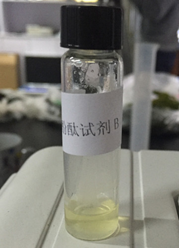 用0.5 mL塑料吸管吸取上層樣品處理液,加3~5滴于試劑B中,蓋上蓋子后搖勻,馬上觀察溶液顏色。